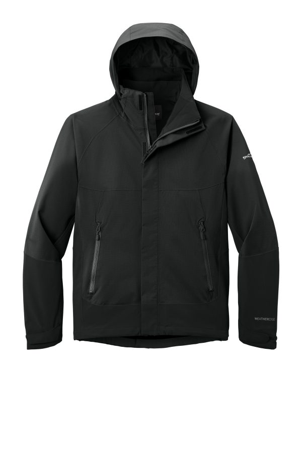 - Contrast Eddie Bauer and WeatherEdge logos heat transfers on left sleeve