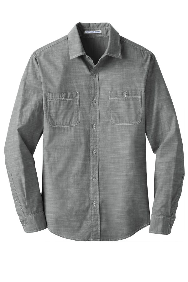 - Washed chambray and off-white contrast stitching give this casual garment washed shirt an authentic, laid-back look.