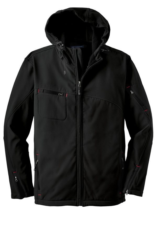 - Our hooded soft shell stands up to the elements and stands out with texture and bar tack details. Highly breathable with stretch, this wind-resistant, water-repellent jacket is just right for the workday or the weekend. A hood and zippered sleeve vents add function and up-to-the-minute appeal.