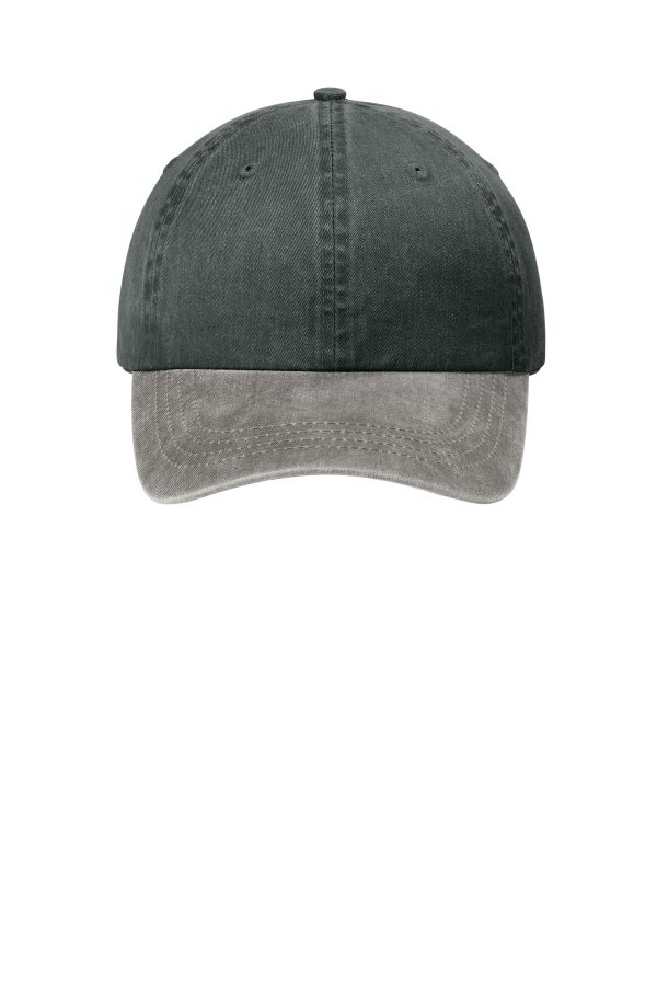 - This garment washed, pigment-dyed* cap has two-tone styling to complement your logo or decoration.